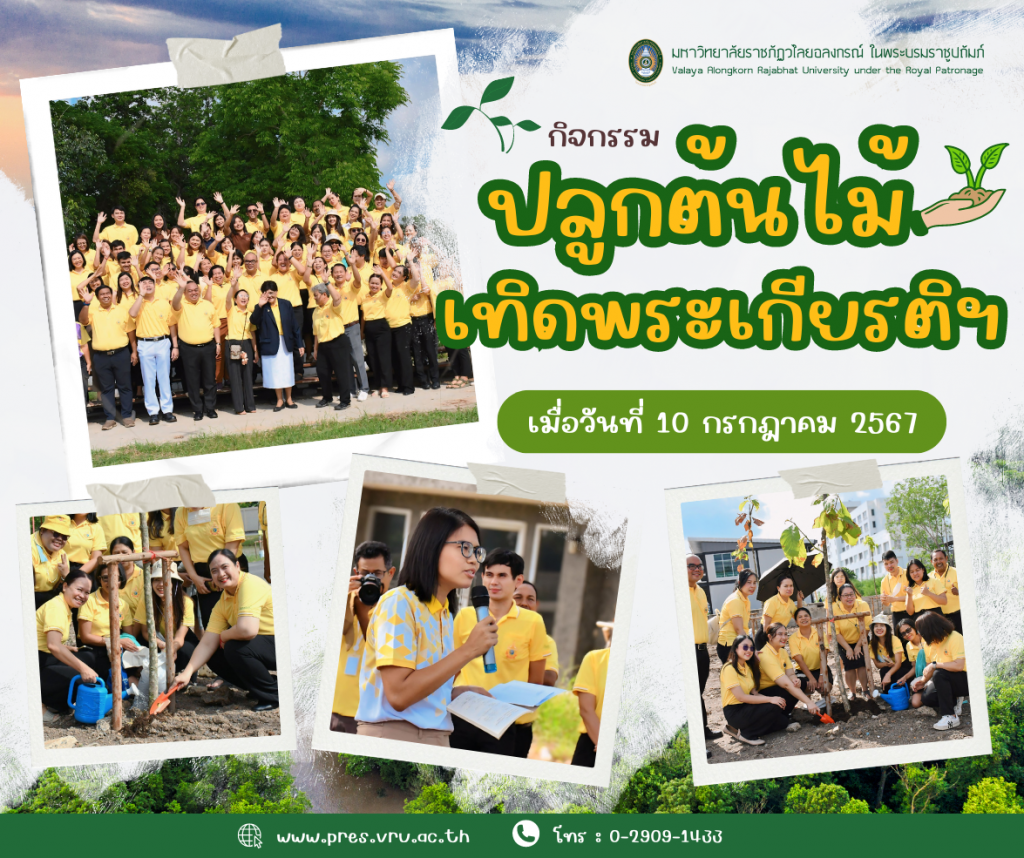 เมื่อวันที่ 10 กรกฎาคม 2567 นางนิธิวดี ตั้งจันทร์สุข ผู้อำนวยการสำนักงานอธิการบดี พร้อมด้วยนางวิไลลักษณ์ พงษ์แพทย์ ผู้อำนวยการกองกลาง และบุคลากรสำนักงานอธิการบดี เข้าร่วมกิจกรรมปลูกต้นไม้เทิดพระเกียรติพระบาทสมเด็จพระเจ้าอยู่หัว ในโอกาสปีเฉลิมพระเกียรติพระชนมพรรษา ครบ 6 รอบ 72 พรรษา ณ บริเวณด้านหลังศูนย์จำหน่ายสินค้าชุมชนยั่งยืน และบริเวณโดยรอบมหาวิทยาลัย พร้อมกันนี้ได้รับเกียรติจาก รศ.ดร.สมบัติ คชสิทธิ์ อธิการบดีมหาวิทยาลัยราชภัฏวไลยอลงกรณ์ฯ รองอธิการบดีและผู้บริหารมหาวิทยาลัย เข้าร่วมกิจกรรมดังกล่าวอย่างพร้อมเพรียง…