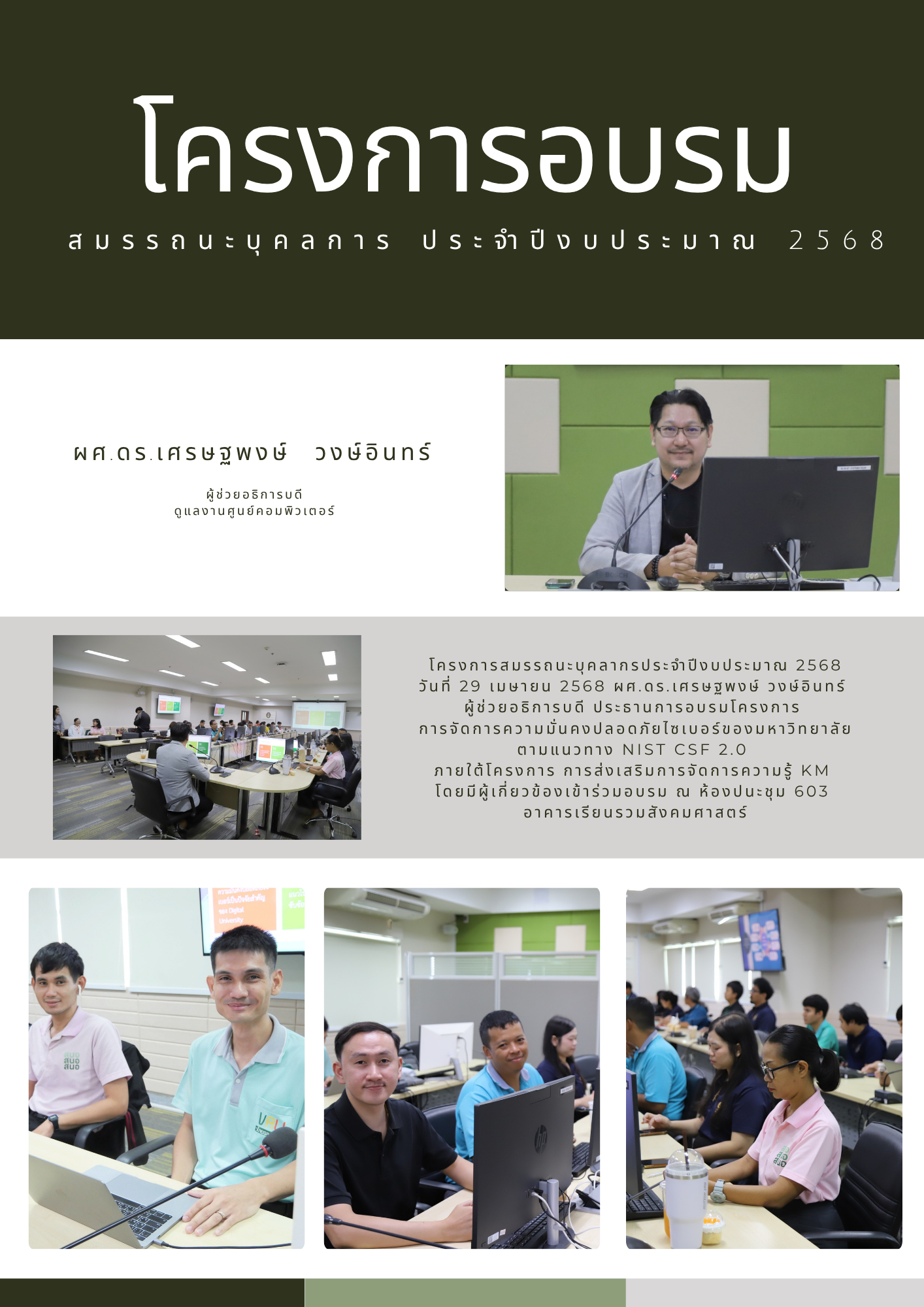 โครงการสมรรถนะบุคลากรประจำปีงบประมาณ 2568 presvru 8 เดือน ago Related posts การประชุมคณะกรรมการบริหารงานบุคคลของพนักงานมหาวิทยาลัย (กบม.) by presvru 3 ปี ago การส่งมอบอุปกรณ์เครื่องคอมพิวเตอร์ ให้กับโรงเรียนวัดธรรมนาวา by presvru 1 ปี ago การส่งใช้เงินยืมนอกงบประมาณ by presvru 5 ปี ago